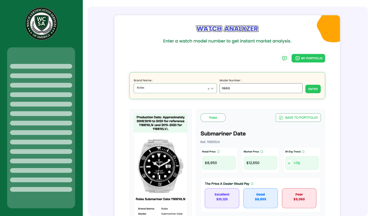 Track all your Buying and Selling in the Watch Analyzer’s Portfolio.